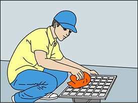 瓷磚背面朝上放置于水平地面,清除背面樹脂油污及粉塵等雜物(瓷磚不能泡水,保持干燥);