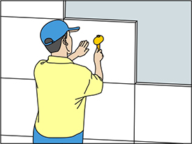 將瓷磚粘貼到墻上,砂漿初凝后不可再移動,如需調整必須將原粘結劑清理后重新用粘結劑粘結。