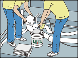 將粉料和防水膠按照使用要求的比例混合一起,充分攪拌。