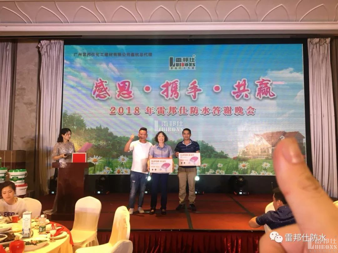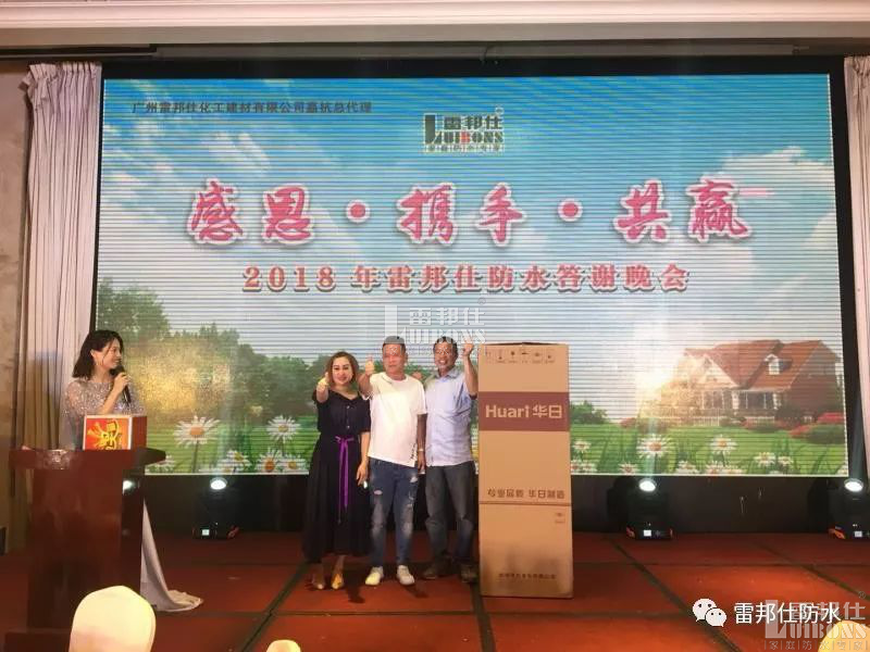 此外,雷總還為到場(chǎng)來(lái)賓們準(zhǔn)備了精美禮品,特別是一等獎(jiǎng)獲得了華日冰箱,其他獎(jiǎng)項(xiàng)也是很豐厚!這是對(duì)大家一直以來(lái)對(duì)雷邦仕建設(shè)與發(fā)展過(guò)程中給予的支持幫助表示衷心感謝和誠(chéng)摯問(wèn)候!大家共同分享美酒與佳肴,每個(gè)人臉上都洋溢著幸福的笑容。現(xiàn)場(chǎng)場(chǎng)面令人火爆,也讓在坐的全體師傅們激情澎湃,同時(shí)雷邦仕對(duì)眾多的金牌泥水工師傅寄予2018年新的希望,并引起全體師傅的共鳴。