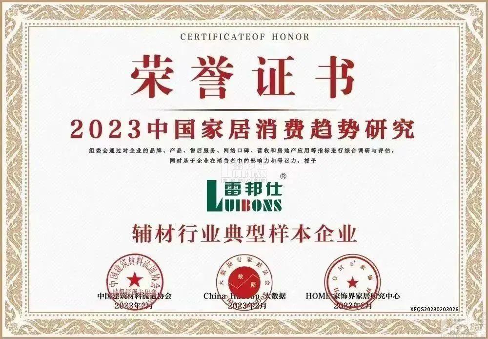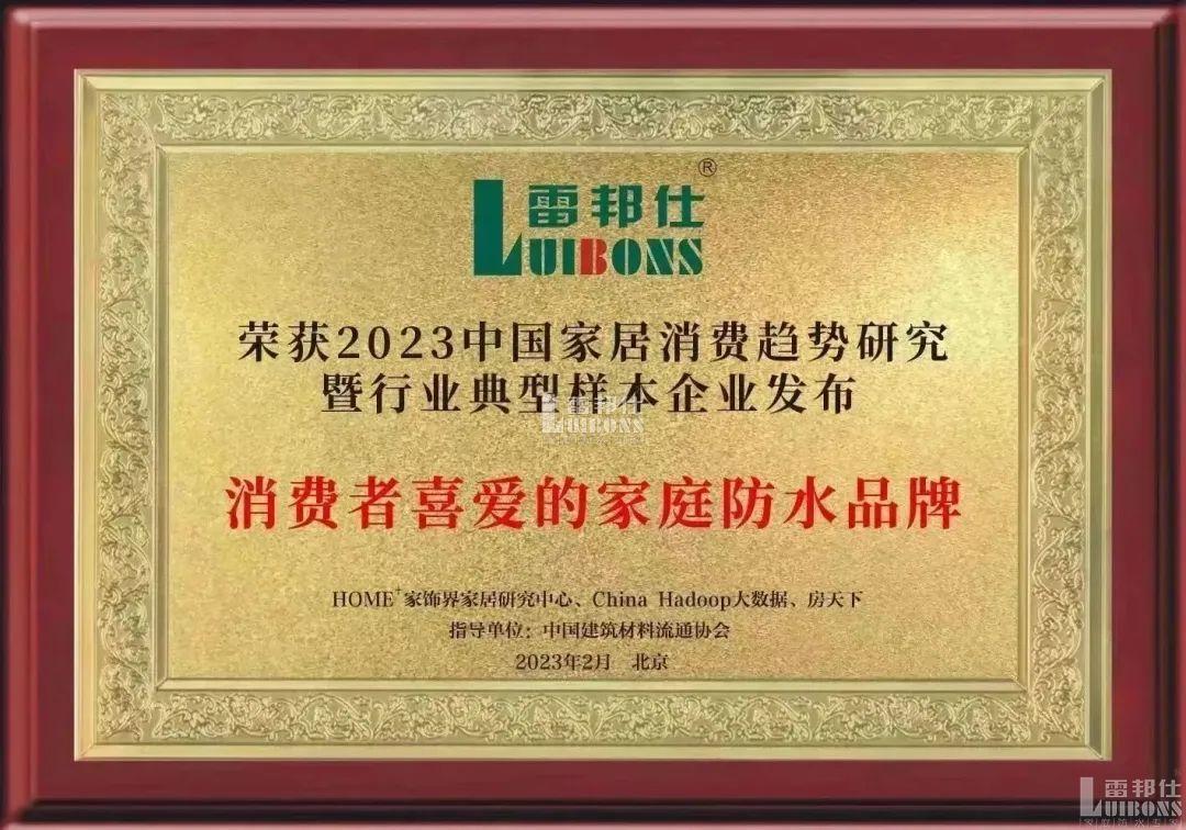 喜報 | 雷邦仕榮獲2023年中國家居消費趨勢研究輔材行業(yè)典型樣本企業(yè)和消費者喜愛的家庭防水品牌