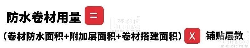 防水卷材用量主要是由卷材防水面積、附加層面積及卷材搭建面積三部分組成,它的計算公式為: