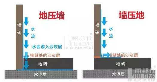 4、要做墻壓地還是地壓墻。墻壓地的美觀性、防水效果、排水效果、縫隙美化優于“地壓墻”,但是可能需要收取額外費用。